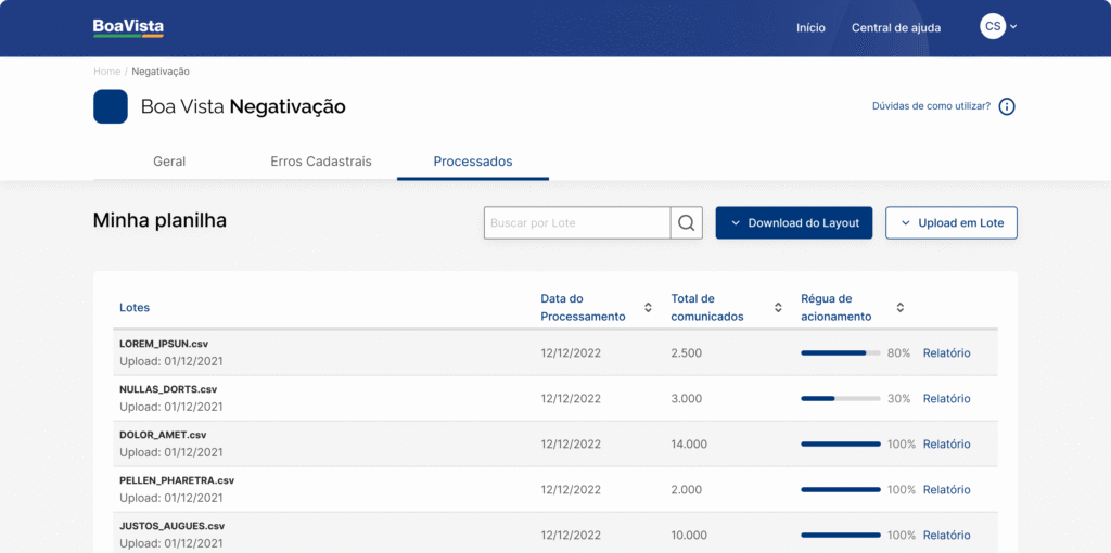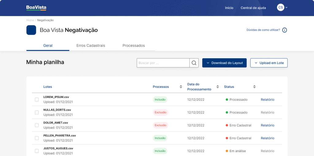 Nosso credor deseja incluir seus clientes no nosso banco de dados, pois se sente mais seguro de acompanhar todo o processamento desse lote. A Boa Vista passa confiabilidade quando damos autonomia para o nosso cliente. Com isso o nosso credor poderá incluir seu lote de clientes com visibilidade em sua planilha.